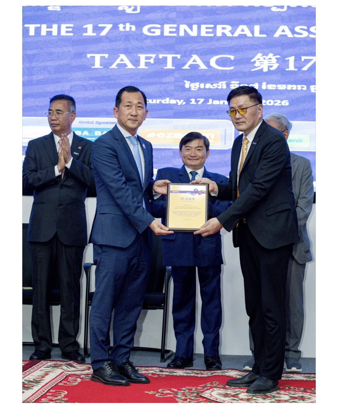 ឯកឧត្តម ហេង សួរ រដ្ឋមន្ត្រីក្រសួងការងារ និងបណ្តុះបណ្តាលវិជ្ជាជីវៈ បានអបអរសាទរយ៉ាងកក់ក្តៅចំពោះលោក He Enjia ដែលត្រូវបានអង្គសន្និបាតបោះឆ្នោតជ្រើសតាំងជាប្រធានសមាគម TAFTAC សម្រាប់អាណត្តិទី១៧ (២០២៦-២០២៨)